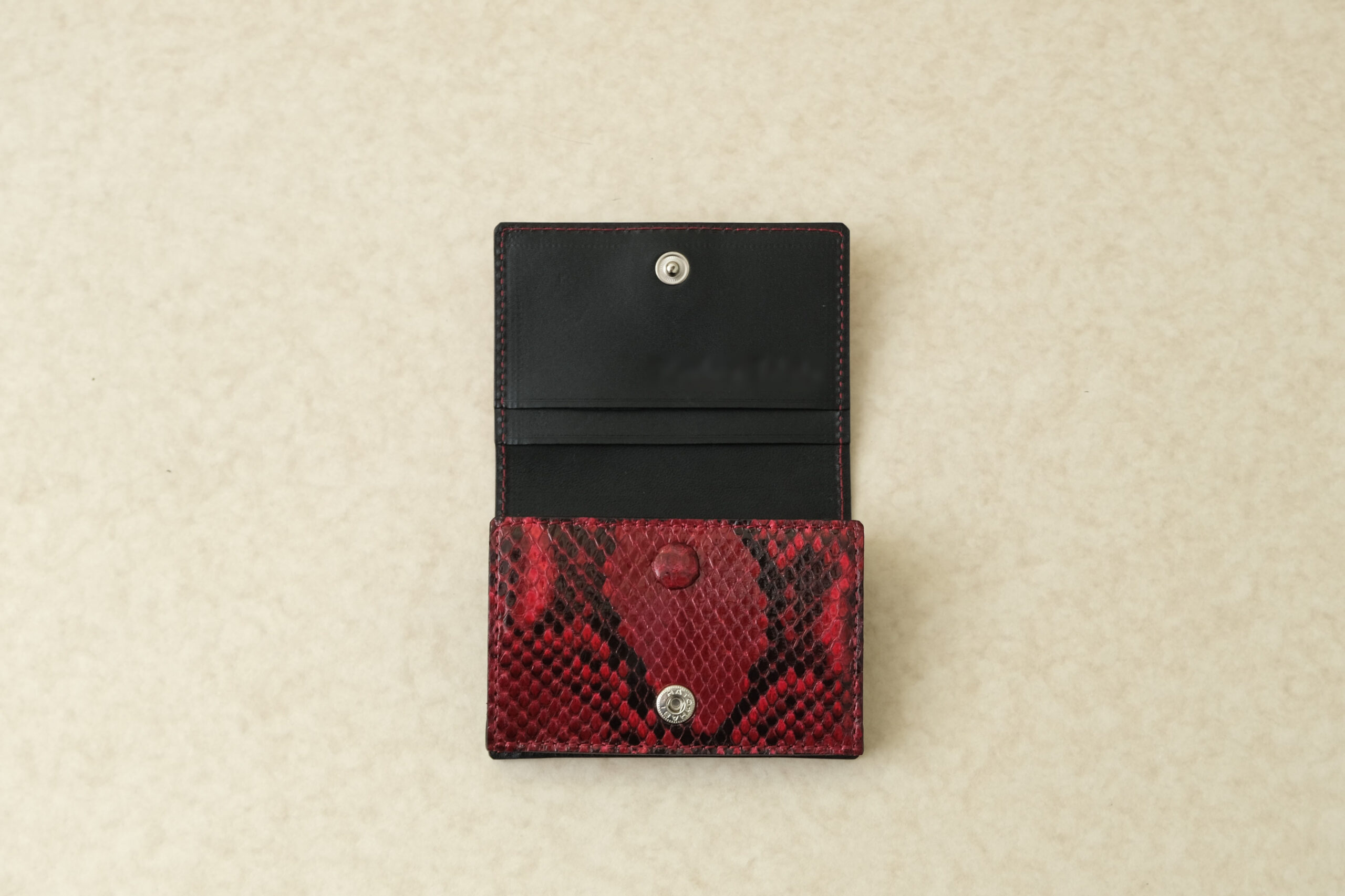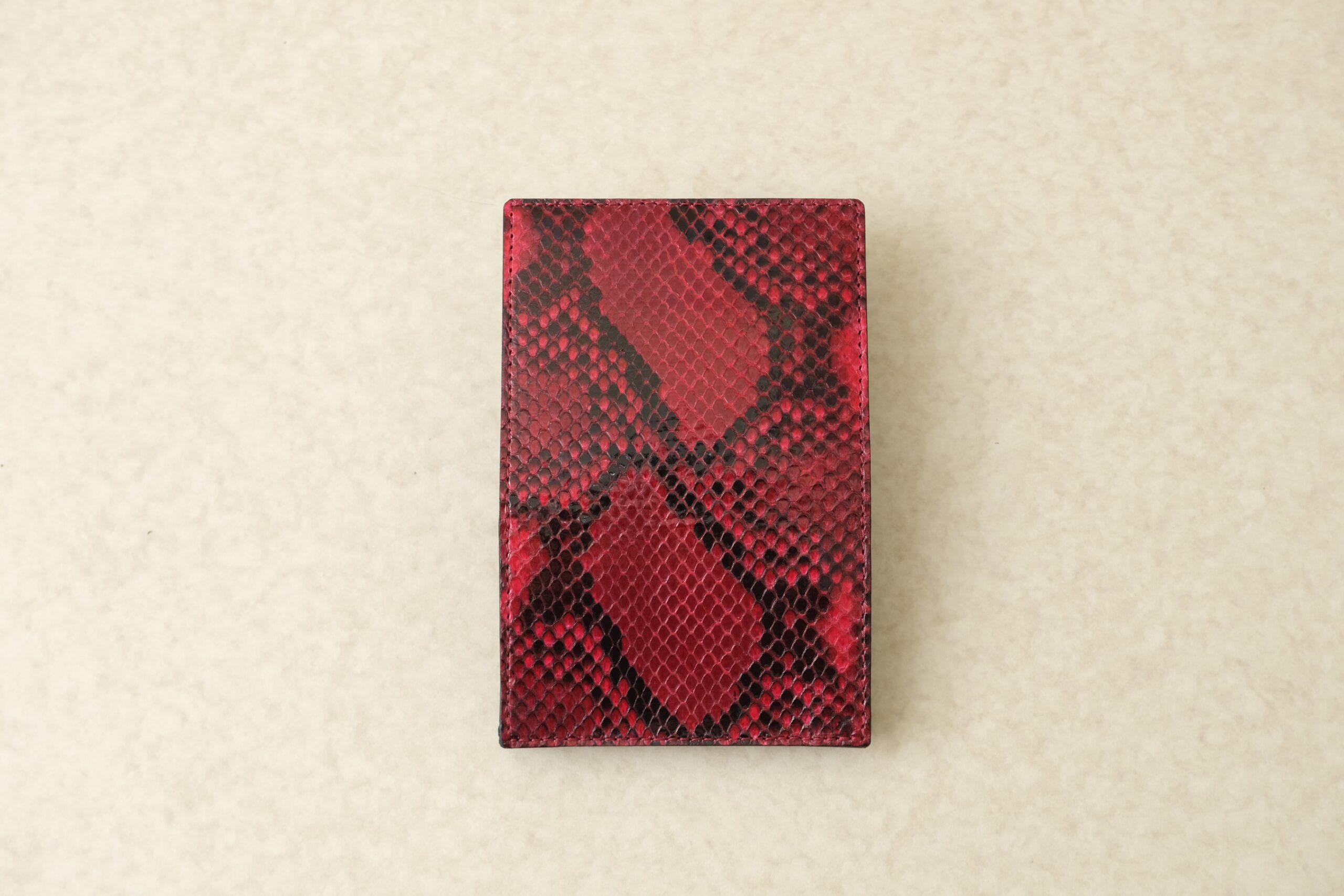 赤いヘビ革でお作りします。