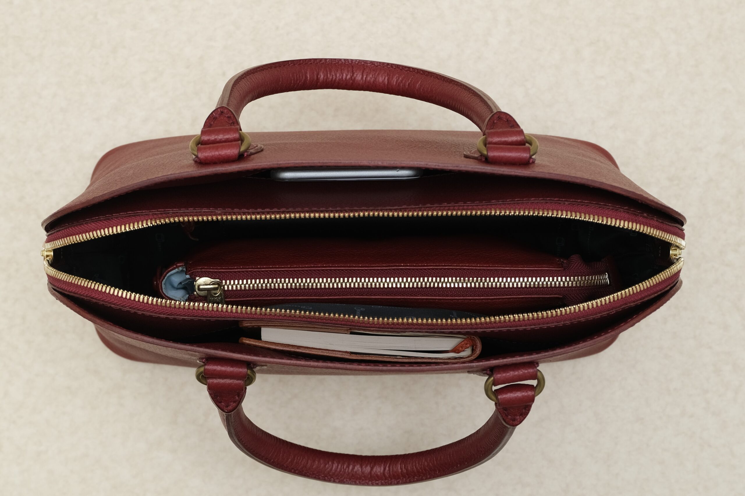 ワインの型押しバッグ、 思ったとおり、 いえそれ以上に素敵です! クラシカルな品があるのに 持ちやすいです。それに、 とても使いやすいそうです。 ご相談時に型押しの種類について お話がありましたが、私には とてもフォーマルに感じられました。 望んだとおりのものになりました。 本当にありがとうございました。 また楽しく持って歩きたいです。 ************ 今回も気に入っていただけて 良かったです。 新年も 気持ち良いバッグライフを お楽しみいただきますよう、 願っております。