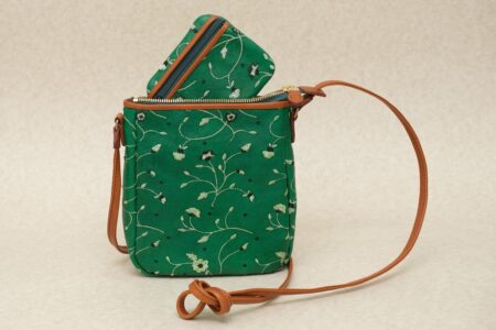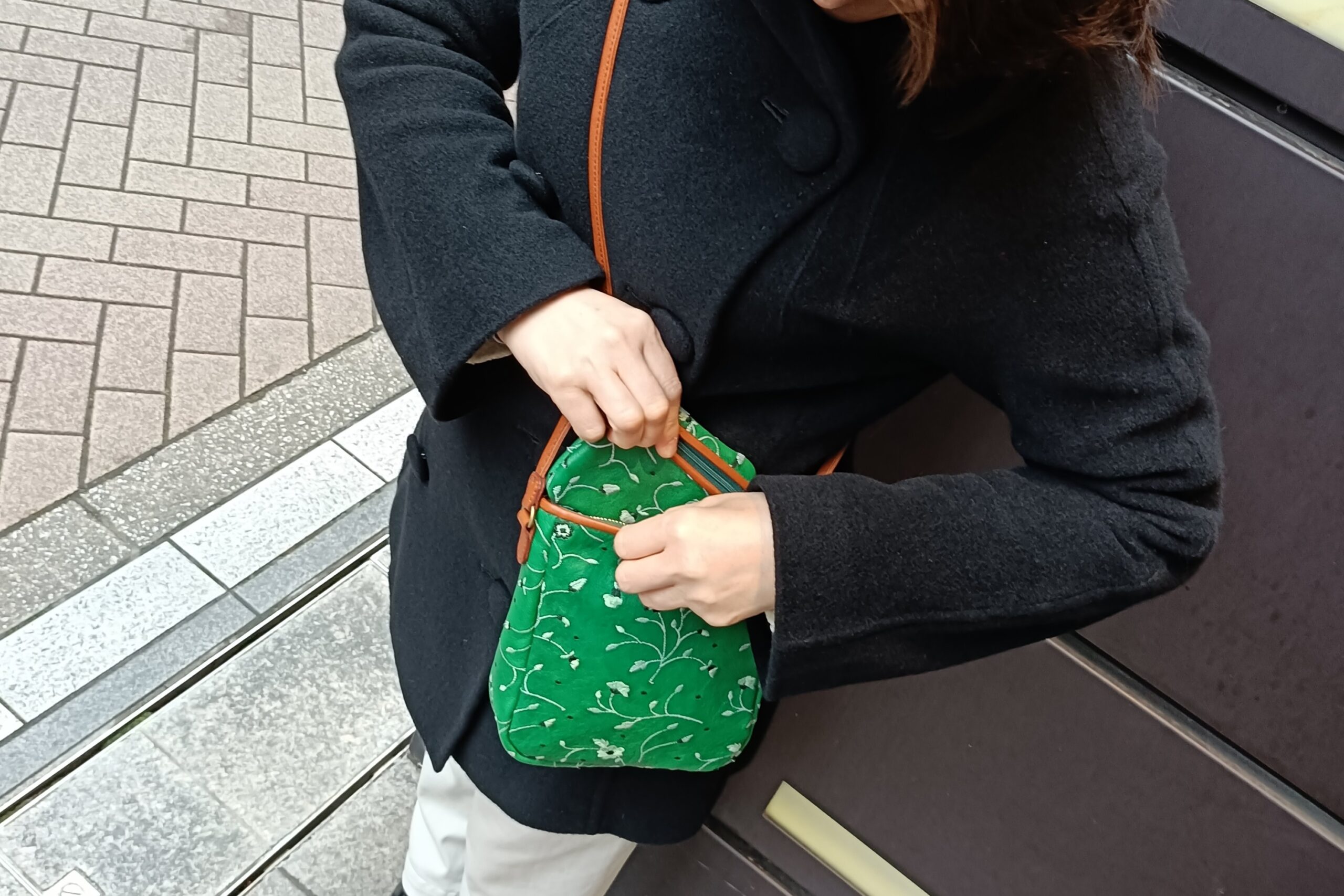 イタリア刺繍革パラダイスグリーンのショルダーバッグとお財布