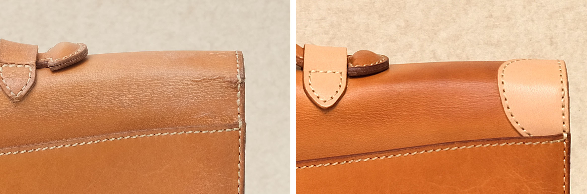 革製品の折り曲げる部分は、